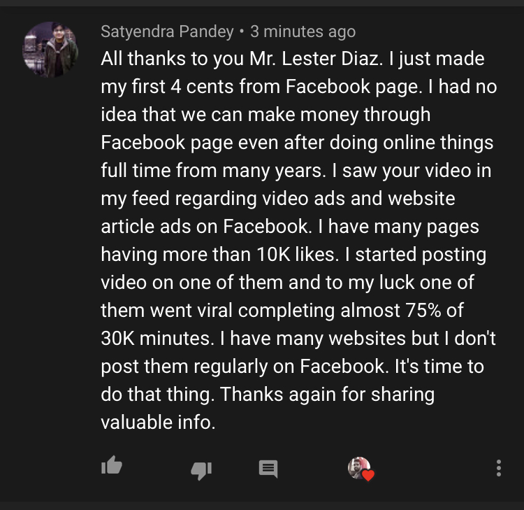 The following testimonials are all real people who took action and have made money on Facebook using what you're about to learn in this course.